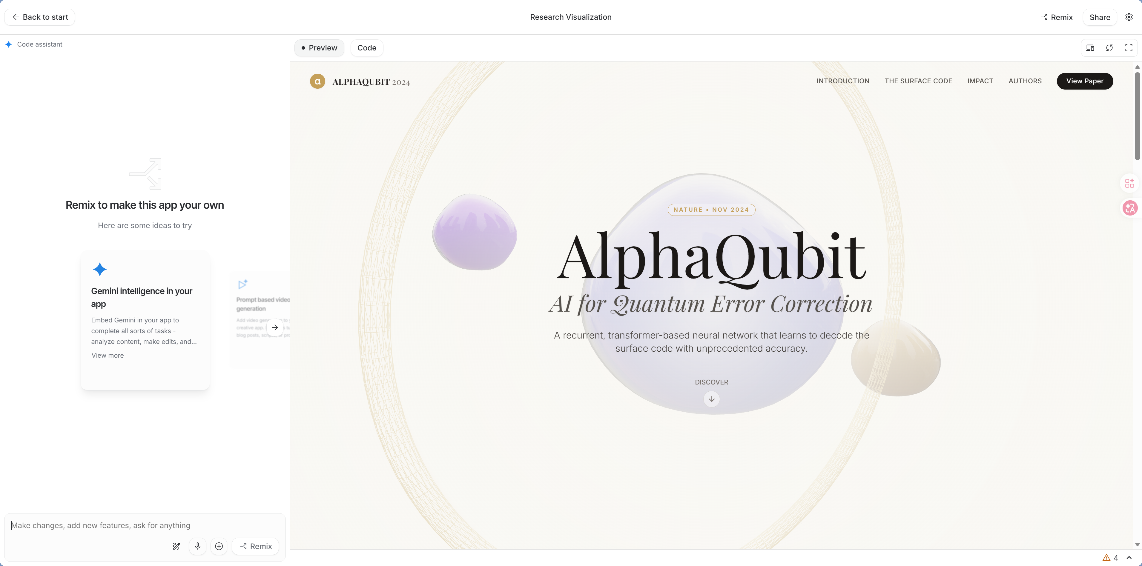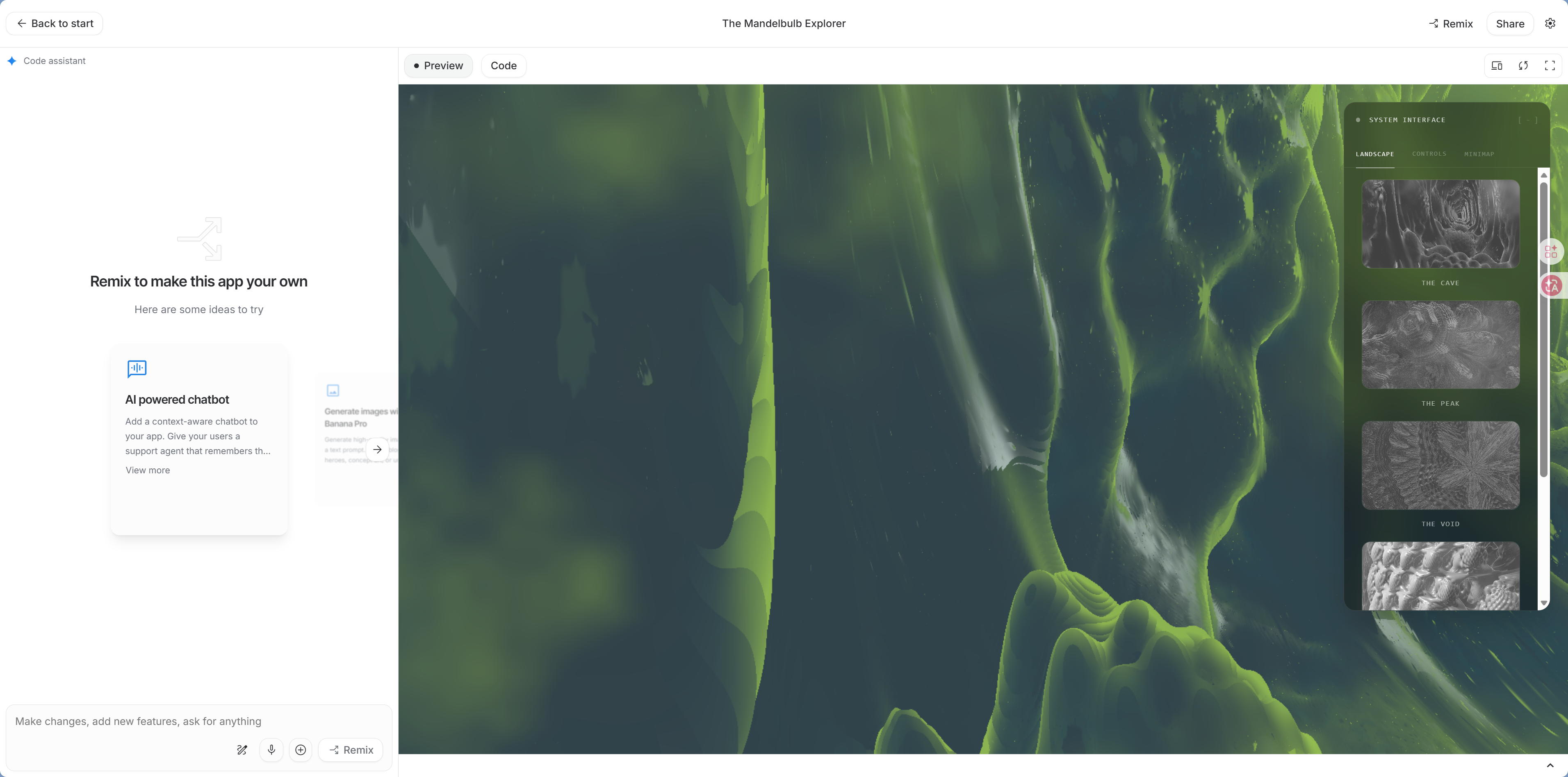 Google 的 AI 应用开发平台,可以用 Gemini 模型生成完整的 Web 应用,包括 UI 界面。你可以把它理解成一个在线版的 Claude Code,但由 Google 提供,打开浏览器就能用,不需要本地环境。